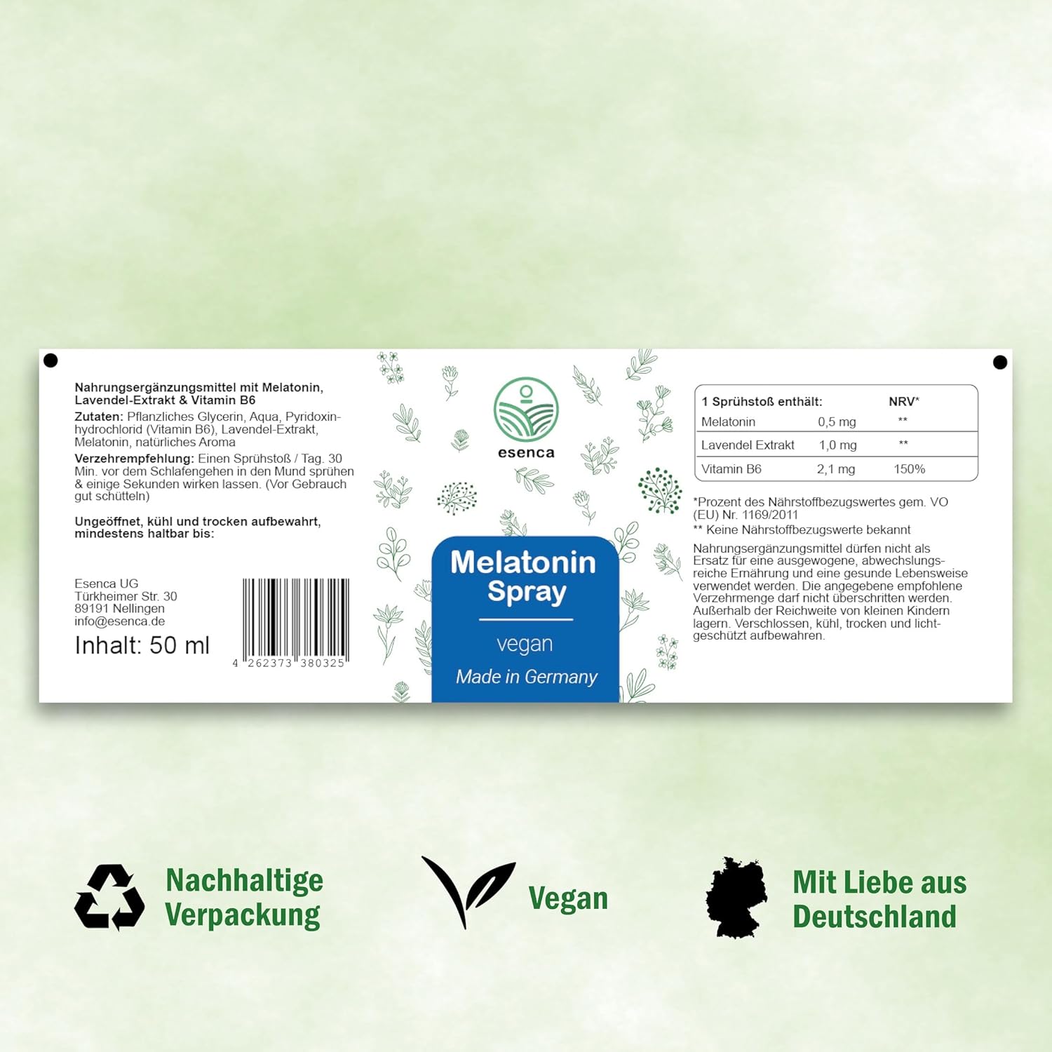 Esenca Melatonin-Spray – 50 ml – Hochkonzentriert, Vegan & Alkoholfrei – Laborgeprüft – aus Deutschland