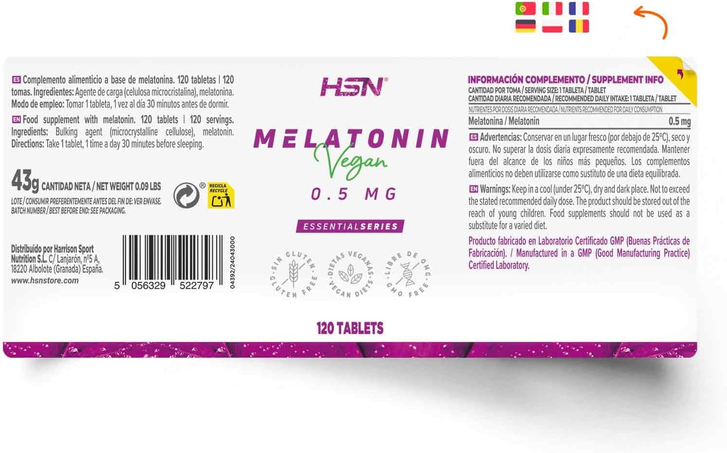 HSN Melatonin 0,5 mg | 120 Tabletten mit schneller Wirkung | Jetlag-Gefühl lindern* | GVO-frei, vegan, glutenfrei