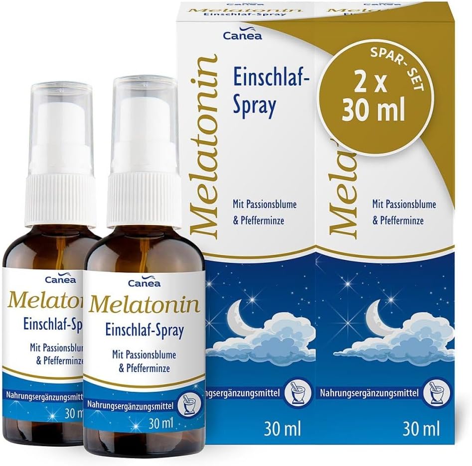 Anwendungsgebiet von Melatonin Einschlafspray Spar-Set (Packungsgröße: 2X30 ml)Melatonin Einschlafspray Spar-Set (Packungsgröße: 2X30 ml) ist ein Nahrungsergänzungsmittel mit Melatonin, Passionsblumenextrakt und Pfefferminze. Melatonin trägt dazu bei, die Einschlafzeit zu verkürzen. Die positive Wirkung stellt sich ein, wenn kurz vor dem Schlafengehen 1 mg Melatonin aufgenommen wird.