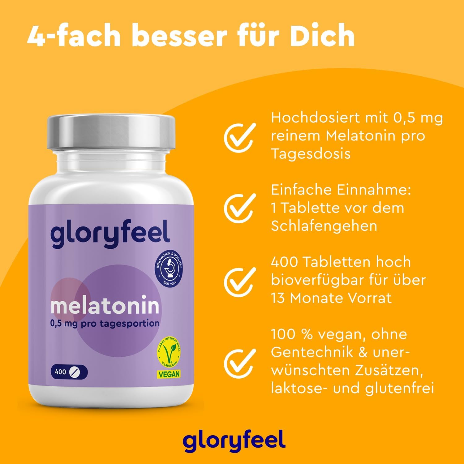 💤 400 TABLETTEN FÜR ÜBER 13 MONATE – Unsere hochdosierten Melatonin Tabletten liefern Dir 0,5 mg reines Melatonin pro Tagesdosis. 400 vegane Tabletten reichen für über 13 Monate Vollversorgung (400 Nächte). EINFACHE EINNAHME: Wir empfehlen 1 Tablette pro Tag ca. 30 Minuten vor dem Schlafengehen mit einem Glas Wasser einzunehmen. Die Tablette muss nicht extra halbiert werden – die Verzehrempfehlung anderer Anbieter beträgt meist ½ Tablette pro Tag.