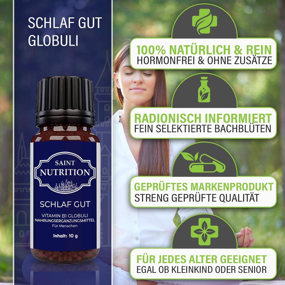 Saint Nutrition Schlaf Globuli, als ersatz zu Lavendel & Johanniskraut, radionisch informiertes Bachblüten und Vitamin B1 Kombi Produkt! Aktiviert das Körpereigene Melatonin!