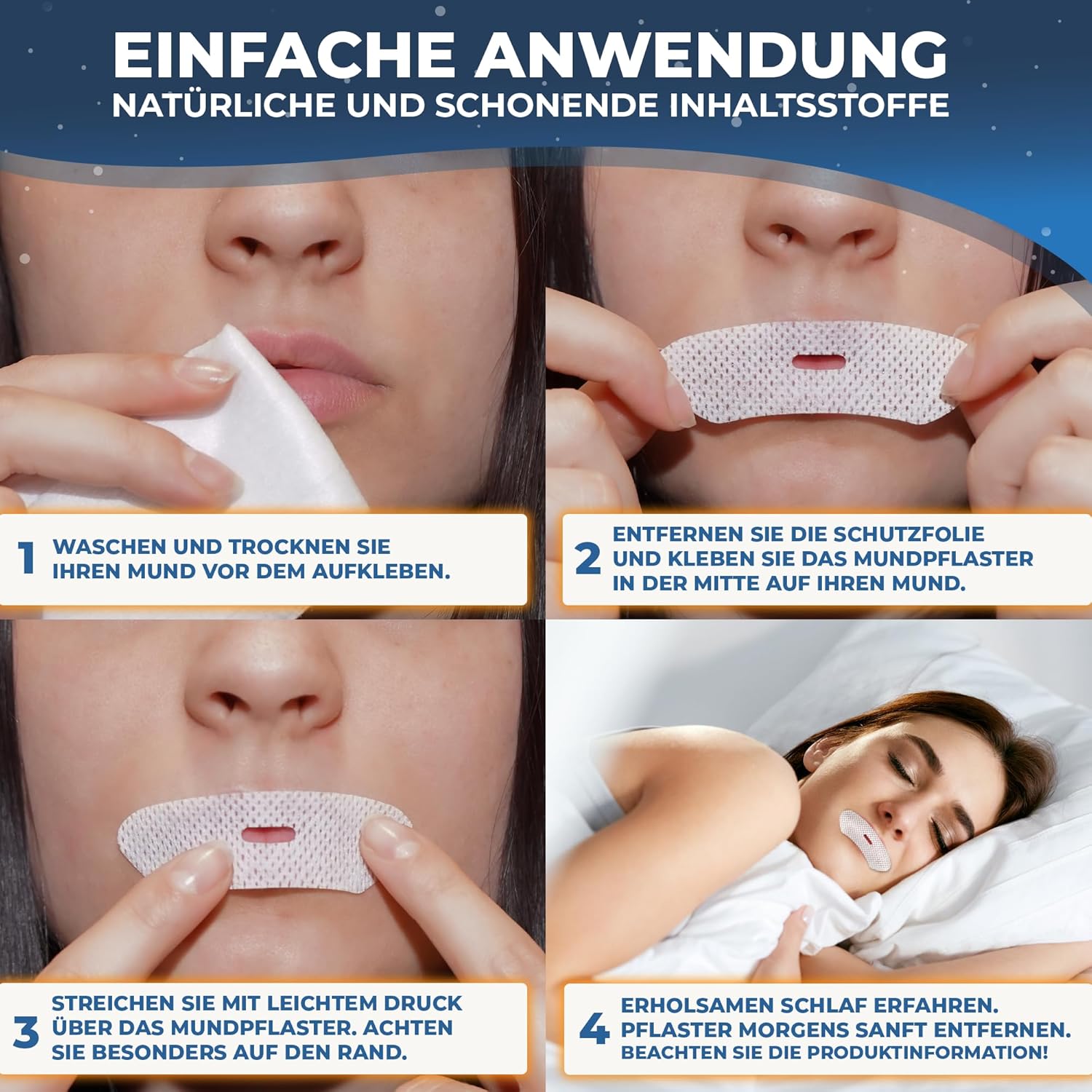 SCHNARCHFREI SCHLAFEN – Entdecken Sie mit unseren Premium Mundtapes zum Schlafen ein wirksames Mittel gegen nächtliches Schnarchen. Genießen Sie ruhige Nächte und einen erholsamen Schlaf für eine bessere Lebensqualität.