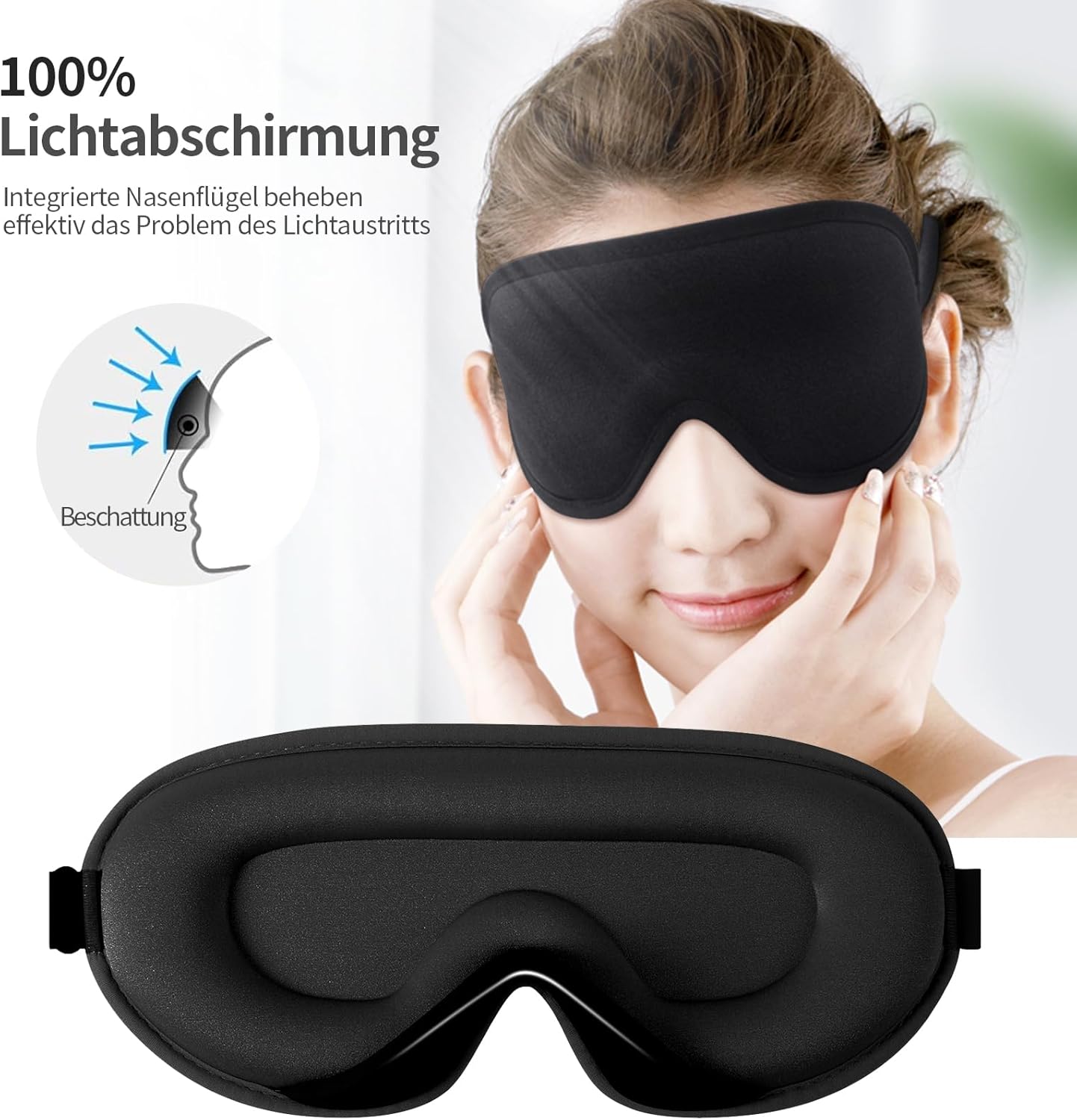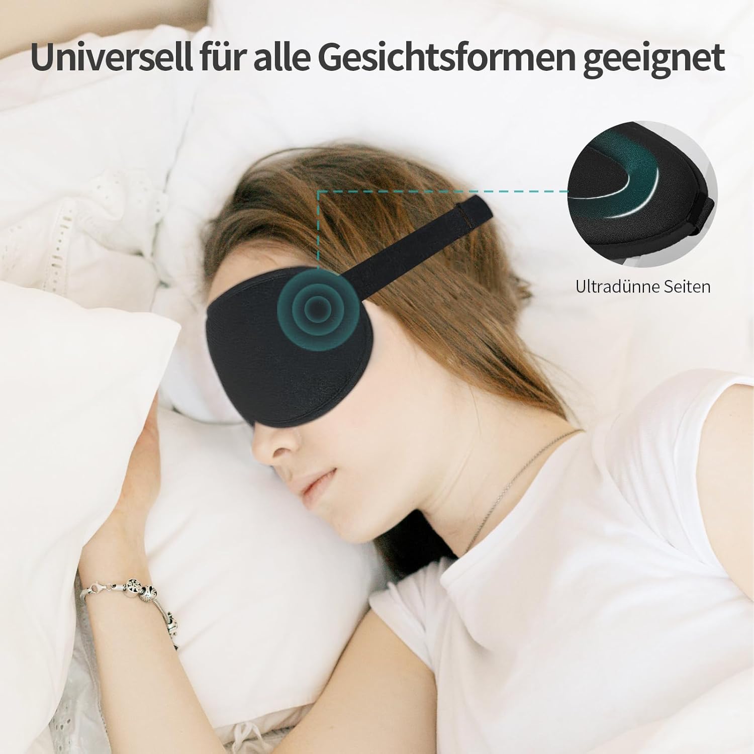 【Ideal für Lichtabschirmung】Diese 3D schlafmaske verfügt über einen ultraweichen schwamm an der Nasenbrücke, der das Licht aus dem Nasenbereich effektiv blockiert, um eine echte 100%ige Lichtabschirmung zu bieten. Sie können überall einen erholsamen Schlaf genießen.